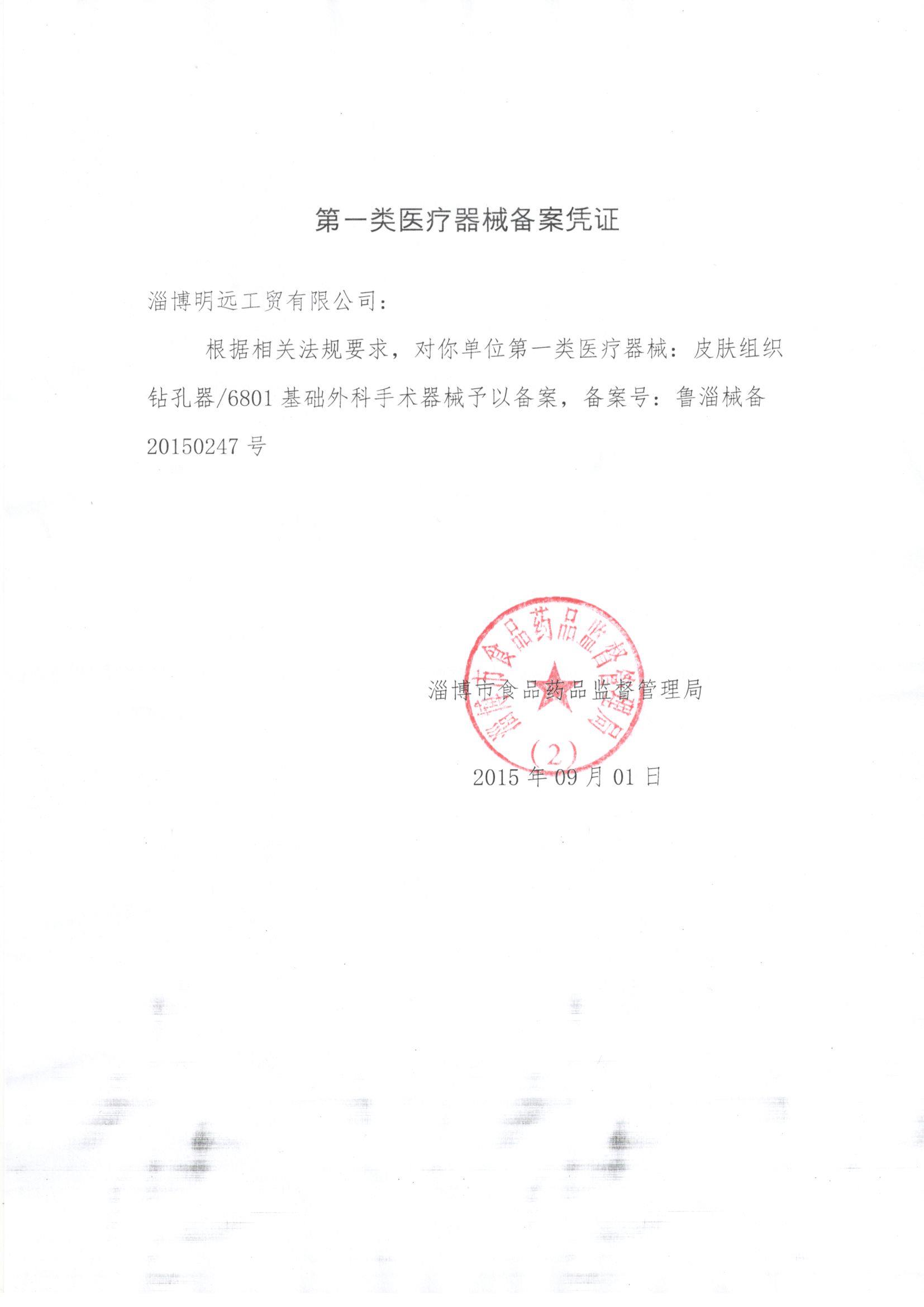 淄博明遠工貿有限公司 公司成立于2000年,是二類醫用穿刺器械專業生產廠家。公司以微創手術器械為發展方向,產品以各類特種穿刺針為主。我們以全方位的管理手段,嚴格地控制產品品質.歡迎您選用我公司產品并對我們的產品提出建設性的建議和意見.我們愿意成為您好的生意伙伴和知心朋友。